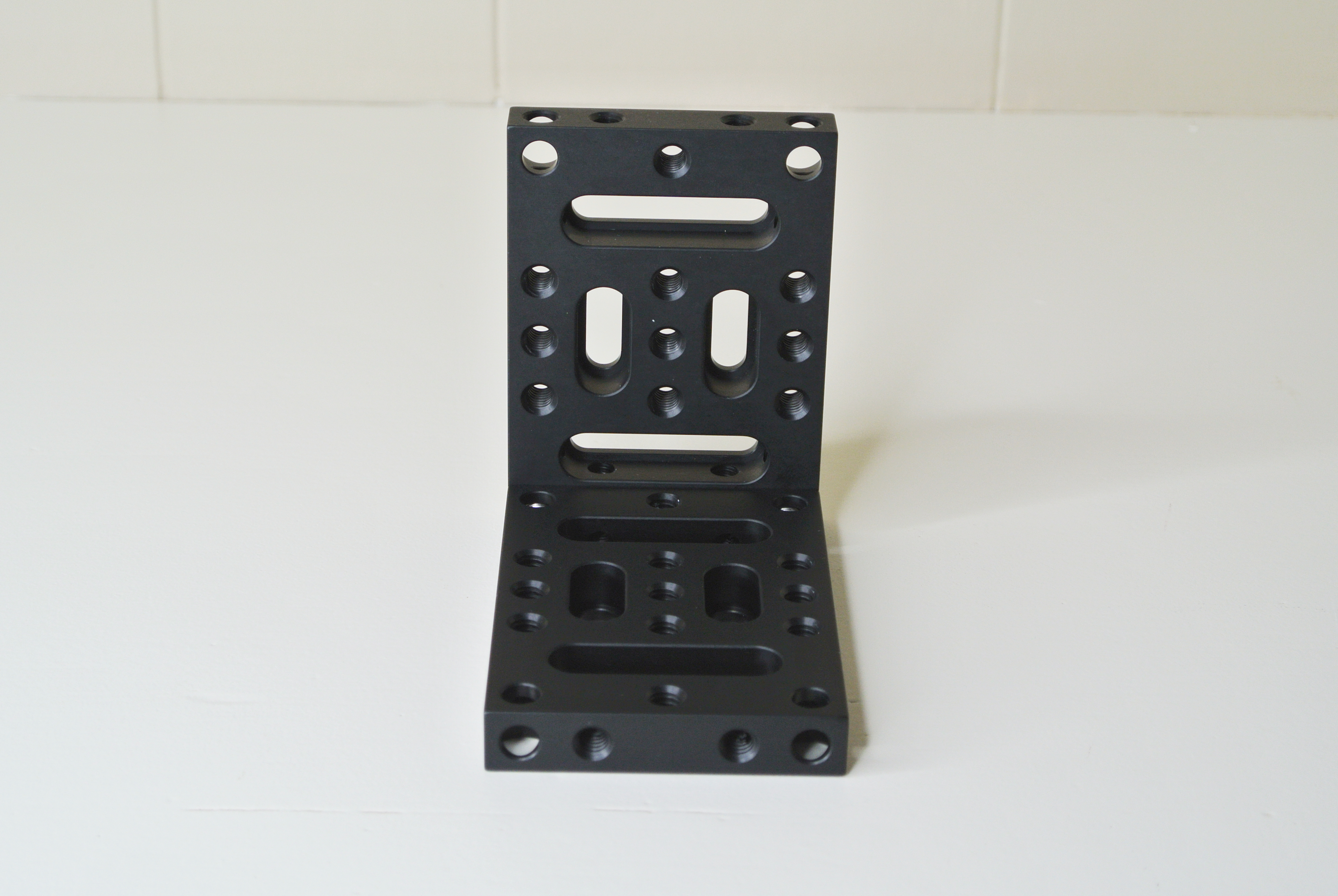 You could use two (or more) of these assembled brackets to suppkort a larger or heavier workpiece. There are other ways to make a bracket using this product, depending upon your specific application. Often it’s easier or less expensive to use these COTS parts for your application than to order custom designed parts from your machine shop. An engineer or technician could be rewarded by experimenting with these plates for a little while to discover other ways to use the CB-2 Construction Plates.