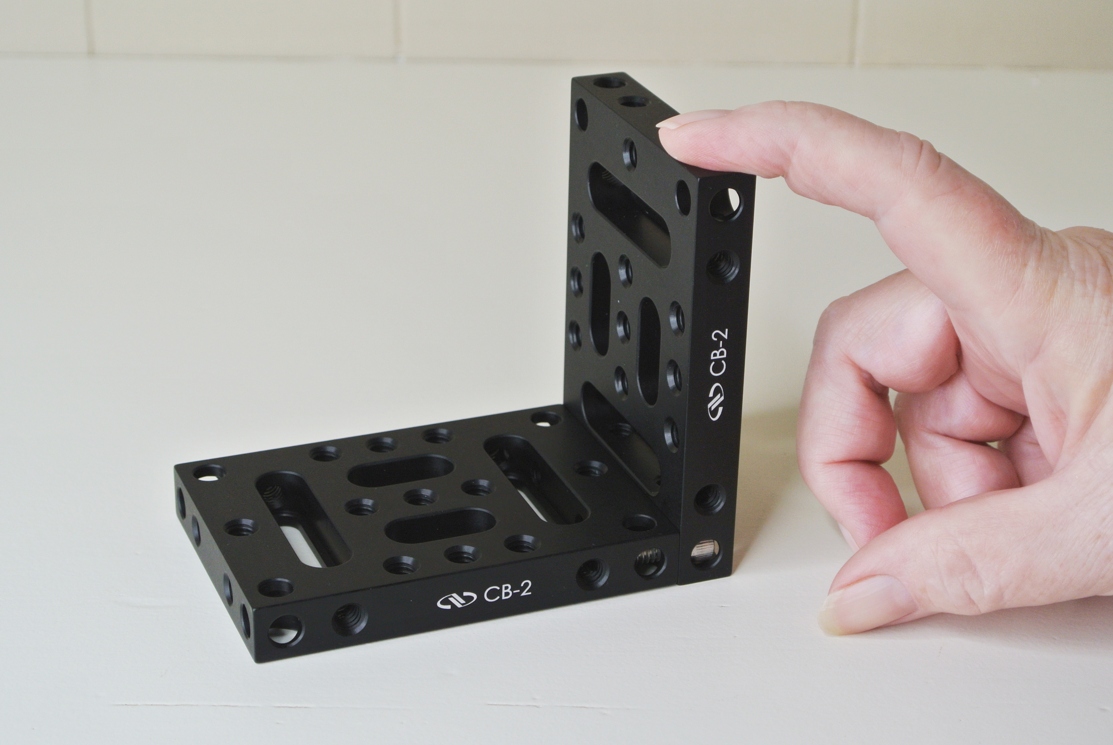 We quote a description of this product directly from Newport’s catalog: (Begin quote) The CB-2 Construction Base is a two-piece design that can be used as a bracket or a base. The base has plenty of tapped holes on all the surfaces as well as clearance holes and slots for 1/4-20 screws. Combine all three elements to construct rigid optical assemblies quickly and easily. (end quote)
